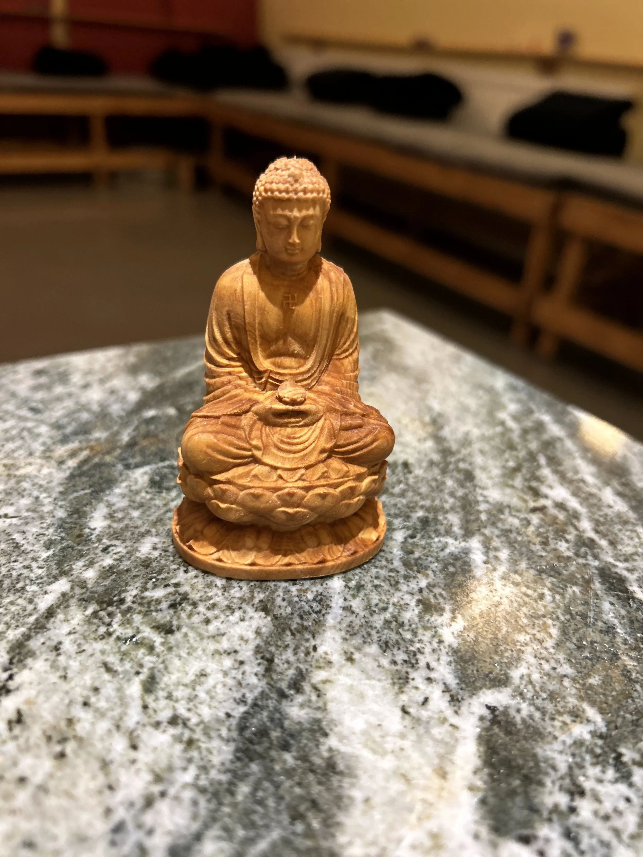 Statyn föreställande buddha djupt försjunken i meditation, ger en känsla av sinnesro och inspiration.