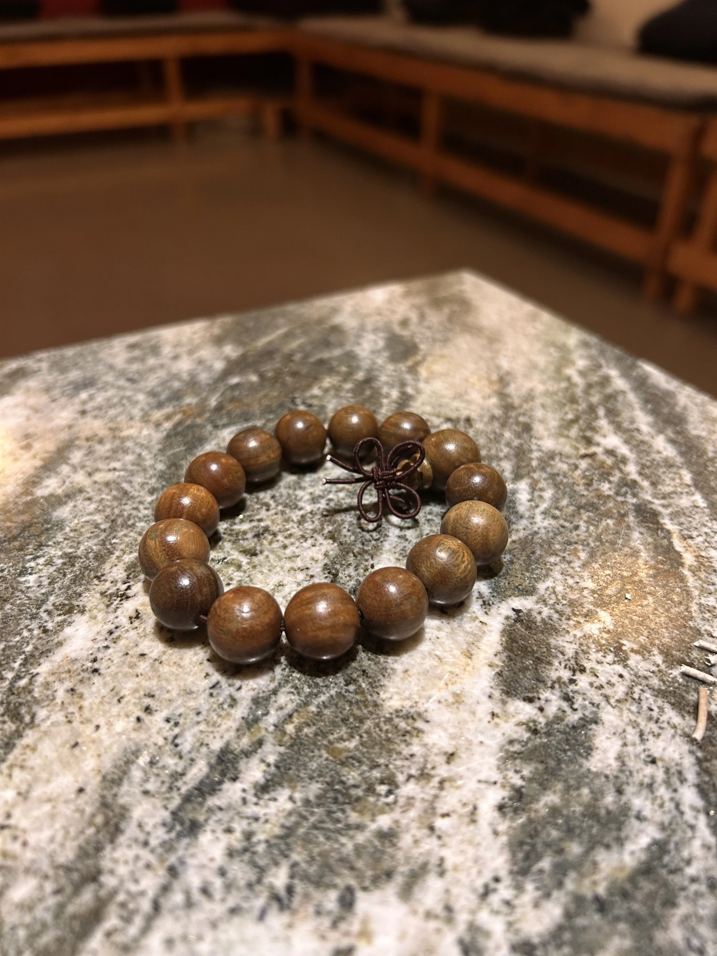 Bärs runt handleden. I Buddhistiska tempel bärs av munkar och lekmän.